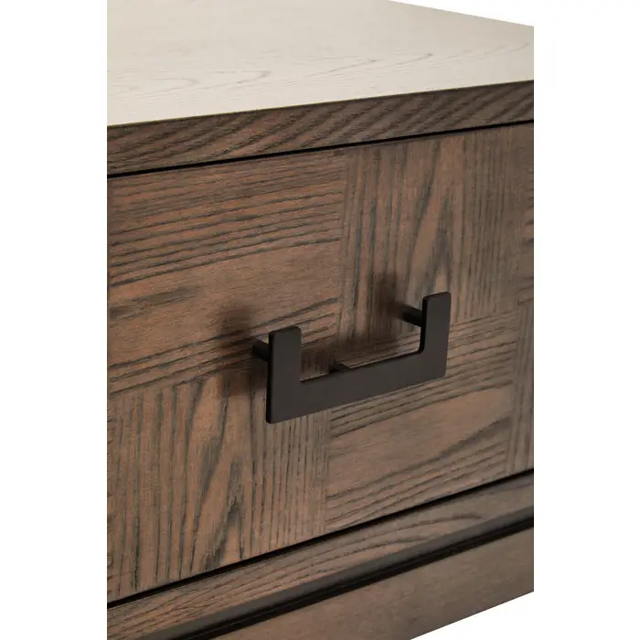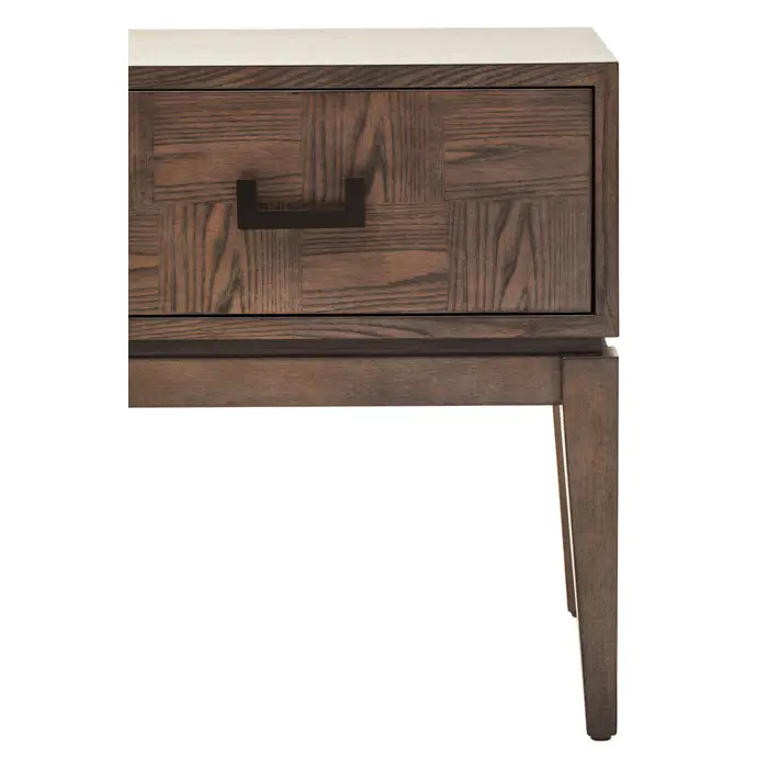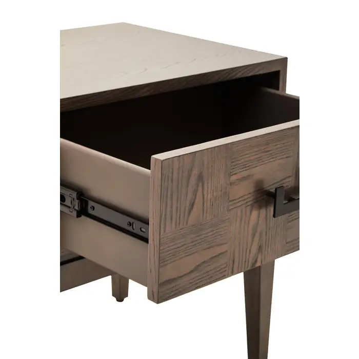 A perfect combination of style and practicality, the subtle grains of the Elmwood enhance the elegance of this side table with its single drawer and black metal handle.