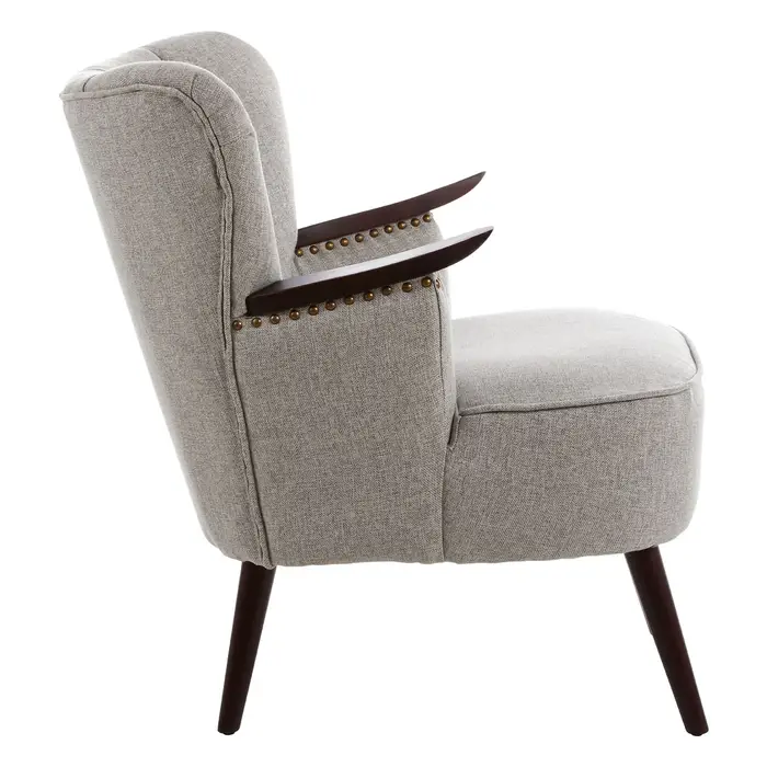 Reminiscent of Wimpole Mews, this retro ebony and taupe occasional chair is super trendy.