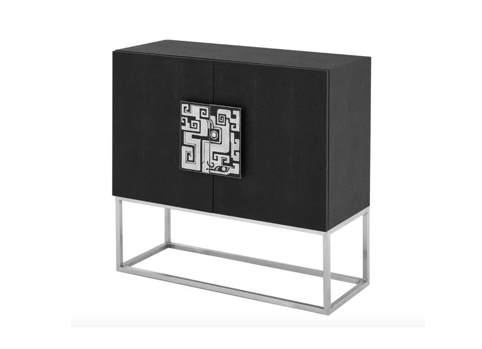 Very Chanel! The monochromatic black and white design makes this sideboard very stylish, further offset by the gold criss cross base. A nice surprise are the three inner black lacquer drawers with gold ring handles. A truly beautiful unit without taking up too much space.