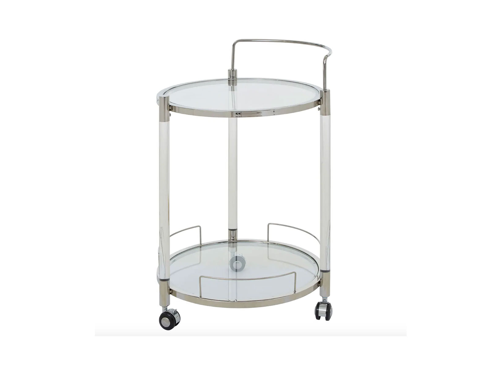 Perfect to tuck in a corner but designer enough to look fabulous, this high polish stainless steel and glass trolley is perfect as a mobile drinks tray.
